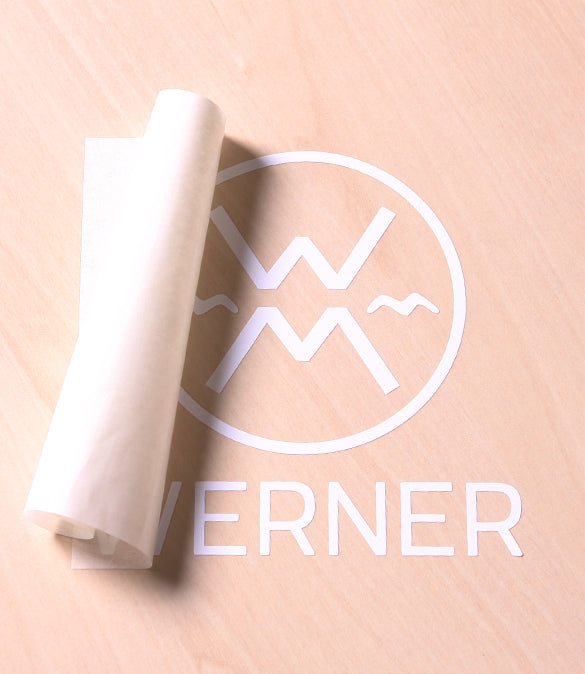 To apply a transfer sticker, remove it from the paper backing by peeling away the transfer tape. The tape will hold the individual pieces of your sticker design in place while you position it on your desired surface. Once your sticker is positioned correctly you can press the transfer tape onto a surface to adhere it. Next use a credit card to apply pressure to the entire design to make sure it's fully adhered. Finally, slowly peel the transfer tape away at a 180 degree angle to leave the sticker adhered.